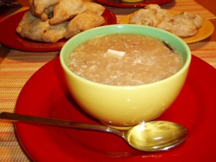 | А хотите расскажу как я варю борщик?НЕТ? А прийдется слууушать...Хехе.Mы вот уже два дня борщик кушаем, с хлебушком домашним. Рецептов борщей миллион и маленькая тележка,когда я варю борщ,то не придерживаюсь каких-то особых рецептов..то есть мой борщ может быть со свеклой,а в зажарке болгарский перчик..или с квашеной капустой..или только со свежей капустой,в зажарке помидоры,паста,морковь,лук..Основной принцип варки борща-что у меня в холодильничке на данный момент есть..АХА,есть свекла,занчит будет со свеклой.ВСЕГДА томатный соус или паста,или пюре.Нравится варить с говядиной,но сегодня варила со свинными шейными костями(там много мяска),для супов они по-моему в самый раз.Они не дорогие,а если еще ив Азиатском маркете покупать вообще задаром. Знаю знаю,ну какая же женщина не умеет варить борщ..Например Американская девушка не умеет,Канадская не умеет..ну может и умеет но все равно не так!Поставлю-ка рецепт на всякий случай,пусть будет.В общем в этот раз получился вот такой борщик.(Возражения что типа это не настоящий борщик не принимаются!) Джазовый борщик. ![]() Кости шейные,свинные,pork neck bones,ну с кг наверное эт точно(можно говядину,курицу) Воды чашек 10 Капуста свежая,половинка маленького кочанчика Капуста квашеная,кислая,пол банки(в банке 900 гр) 2 картошки 2 маленькие морковки или 1 средняя 1 свекла небольшая 1 лук средний 1/2 болгарского перца(брала оранжевенький) Томатное пюре,хмм,5 ст.л. может(можно томат пасту,пару ложек,или помидорки просто порезать,или соус помидорный) 4-5 ст.л. уксуса или по вкусу Сахара,по вкусу Соль/перец по вкусу Лавровый лист Зелень(укроп,петрушка) чеснок(по вкусу) я седня забыла положить хехе Мясо промыли,залили водой и поставили варитьста,снимая пену когда закипит бульон.Варилось у меня часа 2,я люблю чотб как на холодец почти было,такое мягкое-мягкое. Пока мясо варитя можете приготовить все остальные ингридиенты. Почистить и нарезать овощи-капусту,картошку,лук,перец,а свеклу и морковку натереть на терке.Все лежит в тарелочках и ждет своего часа. Зажарку можете сделать заранее. На сковороде нагрели масло и бросили туда лук, морковь, перец, свеклу. Обжарили все это дело,присыпали сахарком,добавили уксуса(может 4 ст.л. для вас будет кисло,помним что у нас капуста квашеная присутствовать будет в супе,можно уксуса пложить меньше, а если что потом добавить еще)...Интересное дело,иногда я обжариваю лук,потом ложу морковь,снова вместе обжариваю и так далее,но вот сегодня все вместе сразу бросила и нормально...Добавили томат,и развели быльоном из кастрюли,где-то до густоты не сильно густой сметаны.Покипит-покипит,все вместе потушится слегка,выключите огонь и отставьте в сторону. Когда мясо приготовится,мы его оттуда вы удим и в миску отдельную положим.А в бульон бросили нашу капусту,и пусть поварится минут 10,потом картошку-варить до готовности картошки,минут 10.Теперь добавили зажарку и все вместе пусть покипит минут 5.Попробовали..Ну конечно маловато соли,но это на мой вкус.Досаливаю сколько нужно,перчу,и бросаю лавровый лист.Парочку минут кипит,бросаю туда зелень ..кстати у меня как оказалось не было петрушки,зато был предусмотрительно хранившийся в морозилке порезаный укроп.Так вот,щедрою рукою укропчик туда бухаем..а если свежий есть еще лучше,пучочка не пожалеем для такого дела(и петрушки желательно),а так же пропущеную 