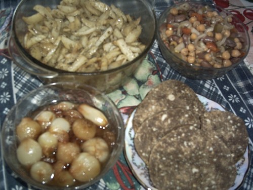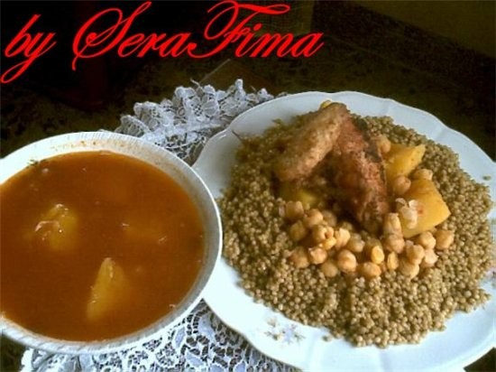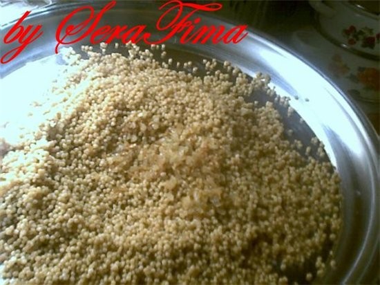 Сегодня сделала Кифта с картошкой в суние. Делаются маленькие котлетки укладываются на противень .Потом чеснок (зубчики разрезала на пополам),лук большими дольками разложила вокруг кифты.Ещё крупные дольки помидор тоже под картошку,а наверх кружочки картофеля.Кипяток посалила ,добавила душистый перец. На огне довела до кипения и накрыв фольгой ,убавила газ и дала приготовится картошке. Потом переложила в духовку(без фольги),ещё подняла кифту на верх картошки и дала подрумянится. ![]() Рис с вермишелью: Рис-2 стакана залила горячей подсоленной водой,перемешала и оставила на полчаса.Потом слила воду и промыла. ![]() В кастрюле поджарила до золотистого цвета вермишель на двух фенжанах растительного масла. |