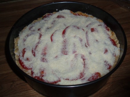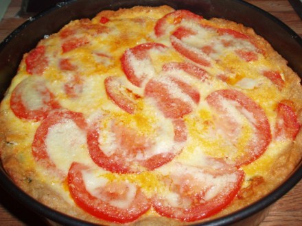 3 яйца слегка взбить 1/4 чашки молока 1 помидор порезать кружками 1/4 чашки сыра Пармезан или феты(брынза)