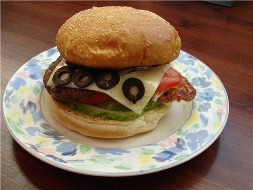 | Ларка Ларис...........какой пирожок получился, отпад! Золотистый..прямо захлёбывюсь слюнями Айрина Баклажанчики солнечные! Аппетитные- не то слово! И грудки с салатиком и баба гануш - все очень вкусное! А у меня просто хамбургер с помидорками, окурчиками солеными....да, я туда ешё запихнула салатик от Веры -крымчанки мз морковки и баклажаном! Картошечка фри и пепст...обязательнЫ. |