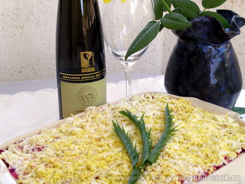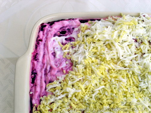 4 спинки (филе) селедки (2 селедки) 1 луковица 2 большие картофелины 2 морковки 1 большая свекла 4 яйца Майонез