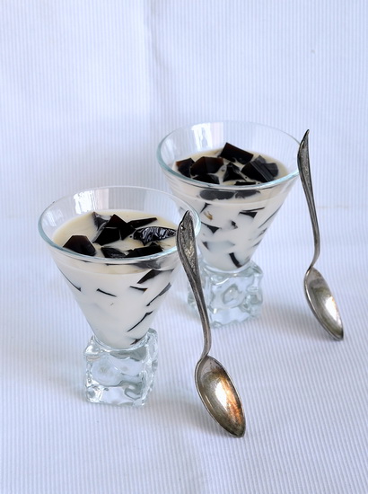 ![]() 1 ст ложка растворимого кофе 1 ст кипятка 2-3 ст ложки кофейного ликёра "Kahlua" 1 ч ложка желатина 1/2 ст холодного молока 1 ст ложка сиропа "Irish cream" 2 ст ложки сгущёного молока Приготовить кофе (можно сварить кофе любимым способом). Слегка остудить. Добавить ликёр, перемешать (если вы не употребляете алкоголь, рекомендую добавить сахар по вкусу). Добавить желатин. Дать постоять 2-3 минуты, чтобы набух. Подогреть на среднем огне до растворения. Не кипятить! Вылить в форму, остудить до комнатной температуры, убрать в холодильник и дать застыть (минимум 1 час). Желе нарезать кубиками, разложить по стаканам. Молоко смешать со сгущёным молоком и сиропом. Залить кофейное желе. |