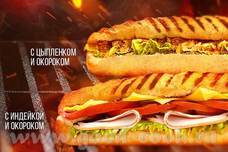 ![]() В этой статье пойдёт речь об интересном и простом блюде – гриль-багете. Из названия сразу ясно, из чего оно приготовлено и по какой технологии. Нужен удлинённый батон – багет, и гриль. А вот далее идут разные варианты. Гриль Гриль может быть сковородой с рёбрами, которая нагревается на домашней плите. Готовить на такой сковороде можно хоть каждый день. Можно использовать настоящий гриль – угольный или газовый. Но обычно такие большие и важные машины прилагаются к большому частному дому или используются в кафе http://prime-star.ru/ и ресторанах. Самое простое – обычный мангал с решёткой. В последнем случае гриль-багет можно готовить на пикнике на природе. Жарка багета Багет для этого рецепта разрезается вдоль пополам. Если багет очень длинный, то его можно сразу разрезать на куски нужной длины, которые поместятся на гриле. Вместо багета можно использовать тонкий батон (он отличается от багета структурой мякоти) или небольшую чиабатту. Есть три типа обжаривания багета: 1. Обжарить половинки с двух сторон и затем уложить начинку. 2. Положить начинку на половинки и обжарить сначала сторону с начинкой, а затем сторону с корочкой. Подавать такие запечённые половинки багета можно прямо так, как обжаривались. А можно сложить их начинкой внутрь. 3. Нафаршировать багет начинкой, а затем поджарить с двух сторон. Гриль-багет с цыплёнком и окороком ![]() Ингредиенты: - багет - майонез - сыр чеддер - цыпленок - перец болгарский - огурцы маринованные - окорок варёно-копчёный - лук красный - салат китайский - горчица готовая - сливки 33% Маринад для цыплёнка: - масло подсолнечное рафинированное - специи (сушёный чеснок, перец, паприка) - соль Приготовление: 1. Куриное филе или мясо с бёдер замариновать и оставить на ночь в холодильнике. На следующий день мясо обжарить до готовности. Нарезать полосками. 2. Подготовить горчичный соус: Смешать горчицу и жирные сливки. Посолить по вкусу. При желании добавить немного лимонного сока. 3. Нарезать тонкими пластинками сыр, болгарский перец, маринованные огурцы, лук и окорок. 4. Багет разрезать горизонтально. Смазать разрезы майонезом. На нижнюю часть багета уложить слоями все продукты в следующем порядке: - сыр чеддер - салат китайский - цыпленок. Смазать горчичным соусом. Далее: - перец болгарский, - огурцы маринованные, - окорок варёно-копчёный. Опять смазать горчичным соусом. Закончить сборку кольцами красного лука. Положить на начинку верхнюю часть начинки. Прижать, чтобы начинка уплотнилась, но не начала выдавливаться. 5. Обжарить фаршированный багет с двух сторон до появления зажаренных полосок. Гриль-багет с индейкой и окороком ![]() Ингредиенты: - багет - помидоры - соус Айоли с базиликом - сыр чеддер - индейка копчёная - окорок варёно-копчёный - огурцы маринованные - салат Романо - зелень базилика Приготовление: 1. Подготовить соус Айоли с базиликом: блендером взбить до однородности масло подсолнечное, петрушку, зелень базилика, горчицу русскую, орех кешью, сыр пармезан, сок лимона, сахар, соль, чеснок. Смешать с таким же количеством майонеза. 2. Нарезать тонкими пластинками сыр, помидоры, маринованные огурцы, окорок и копчёную индейку. 3. Багет разрезать горизонтально. Смазать разрезы соусом Айоли. На нижнюю часть багета уложить слоями все продукты в следующем порядке: - салат Романо, - ломтики окорока, - огурцы маринованные, - листо