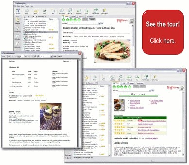 Я уже много разных проверила - эта самая лучшая. Можно взять на www.bigoven.com Это для тех кто знает англицкий и для тех кто хочет его выучить. Есть куча рецептов унутре, можно легко составлять меню на каждый день, а потом легко составляется список продуктов которые нужно купить. Еще можно запросто зацеплять рецепты с интернетовских страничек Програмка различает где ингредиенты, где инструкции, где название. Даже на русском языке. Немножко было трудновато ее наладить, и с русским не все в порядке - ингредиенты русские не читает нормально. Красивая как игрушечка. Печатает красиво с картинками. |