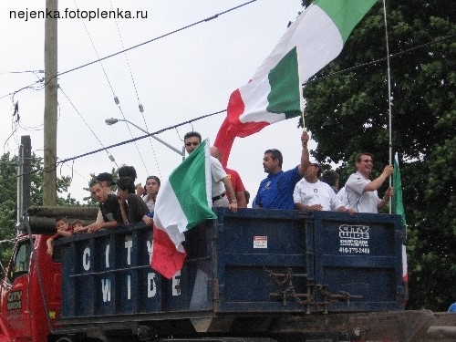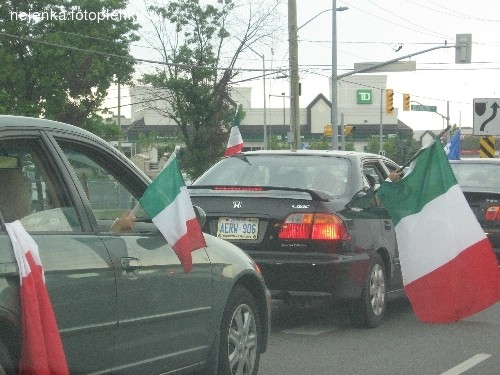 Девочки.вотп ринесла Вам фотки.Они не очень хорошего качества,так как я фотала через лобовое стекло ина ходу езды машины. КАК праздновали итальянцы свою победу[ Так начинался просмотр игры в баре.Фотка тёмная..ничего почти не видно. ![]() Машины по-видимому напрвляются туда же,куда и мы,в итальянский район. ![]() На каждом перекрётске начинают собираться итальянцы . ![]() |