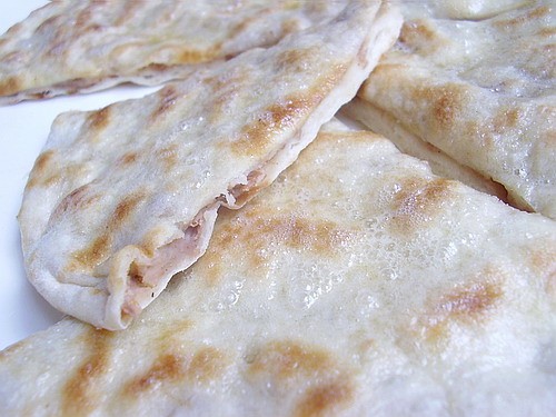 ![]() ТЕСТО делается очень просто - так же, как и для хачапури. Опять же, можно сделать его на мацони (кефире или простокваше), а можно и на дрожжах. Классический вариант лобиани требует обычного дрожжевого хлебного теста. Приведу здесь рецепт, который давала для хачапури. Итак, дрожжевое тесто. Обычно у нас делают его на воде, но я люблю подбавить немного молока – 1:1 – так получается чуть сдобнее и вкуснее. Делаем сначала опару: во все количество теплой жидкости (1 литр) добавляем чайную ложку сухих дрожжей, соль и сахар, перемешиваем. Сыпем муку и делаем тесто как для оладиков. Оставляем ненадолго. Оно поднимется довольно быстро. Когда оно уже настолько поднялось, что вот-вот опадет - добавим остальную муку и замесим эластичное тесто. На последнем этапе замеса добавьте пару ложек растительного масла и вмесите их в тесто. Напоминаю – тесто должно быть эластичным, но не крутым. Оставим еще раз для поднятия. Можно пару раз обмять. Тут же прокомментирую: в случае с лобиани можно сделать тесто просто на воде. Тонкость лобиани заключается в их тонкости А вот если в лобиани положить больше начинки - оно станет похоже на простое лобио и вы подивитесь, зачем надо было его пихать в тесто, когда можно было просто поесть его из тарелки. Сделаете побольше теста - и опять таки, одно тесто на зубах и невкусно. Так что постарайтесь, чтоб комочек теста был равен по величине комочку начинки (и наоборот НАЧИНКА Отварим лобио - по инструкции положено БЕЛОЕ Но я, за вечным неимением времени, пооступаю просто: прокручиваю отваренное лобио в мясорубке. Поверьте мне - все просто замечательно получается! Теперь самое интересное. Берете свиное сало, или бекон, и поджариваете его на сковородке. У нас для этой цели пользуются специальным салом ветчины домашнего приготовления, немного солоноватой (той, которую надо перед употреблением отваривать). Эта ветчина продается у нас на рынках, но если у меня ее нет, а на рынок идти неохота, я просто беру в ближайшем гастрономе сало, или бекончик - обалденно вкусно получается. Итак, режем сало или бекон на кусочки, обжариваем, чтобы вытопить жир. Шкварки вынимаем, а жир выливаем в наше прокрученное лобио. Солим его и перчим черным перцем. Хорошо перемешиваем. Все! Начинка готова. Если вы использовали соленое сало, то солите осторожно, не пересолите, хотя начинка должна быть чуть-чуть солоновата, иначе лобиани будет пресным. Скажу вам по секрету: если у вас нет сала, или оно вам не по вкусу, или оно вам вредно, то лобиани просто отлично получается и с подсолнечным маслом! Просто разогрейте подсолнечное масло и поджарьте в нем немного очень мелко нарезанного репчатого лука, а под конец бросьте ложечку сухого тимьяна. Так начинка получается очень вкусной. В случае с салом лук и тимьян лишние, так как у начинки получается очень вкусный копченый привкус, который не надо забивать ничем другим. Далее - по тому же сценарию, как с хачапури: комочки теста расплющиваются до размера блюдца, затем туда кладется конгруэнтный тесту комочек начинки, края блюдца склеиваются в форме мешочка, а мешочек затем осторожно раскатывается скалкой. Приготовьте для лобиани сковородку побольше, она позволит вам сделать лобиани бОльшего диаметра, то есть хорошенечко и тоненько его раскатать. Толщина лобиани не должна превышать один сантиметр. Кладите лобиани на р