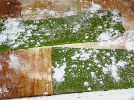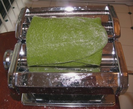 ![]() Использовать в течение одного-двух дней. Или переложить в банку и залить ОМ так, чтобы масса была вся покрыта маслом. В таком виде несколько недель можно хранить в холодильнике. Приготовление пасты 1. Смешать муку и соль. Добавить яйца и хлорофилл, размешать и дать постоять 2-3 минуты, за это время мука впитает жидкость и получится тугое неэластичное тесто. Далее вымешивайте 10 минут на поверхности, слегка присыпанной мукой. Cначала тесто довольно тугое, но по мере вымешивания становится мягким и эластичным. ![]() 2. Завернуть тесто в пленку и дать ему отдохнуть 1 час (это тоже обязательно, после выдержки тесто еще мягче становится). Затем отрезать от основного куска теста по-немногу (~1/4), расплющивать слегка и раскатывать, так чтобы тесто проходило сквозь отверстие в машине для раскатки пасты. Начинать надо с 1, прогнать один раз, получится прямоугольник, теперь взять тесто с одной стороны и сложить его внутрь на 1/3 ![]() |