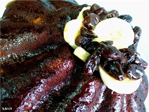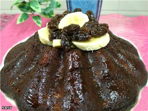 ШОКОЛАДНЫЙ ТВОРОЖНИК С БАНАНАМИ ![]() Сверху украсила бананом и изюмом. ![]() А это разрез. Можно кушать поливая карамельным соусом как в предыдущем рецепте, но и так просто тоже очень вкусно. ![]() |