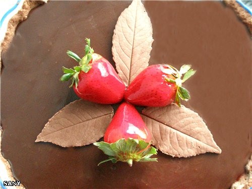 Листики тоже шоколадные.Купила на днях розы и оборвала несколько листиков, чтобы сделать украшение. Надеюсь ты знаешь как это делается. Я только на такие вот простые украшения и способна. |