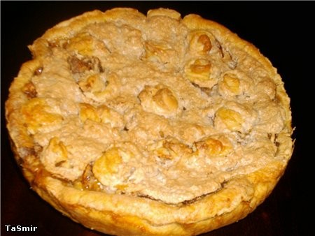 Ну тады, ой Хотела сделать сегодня презентацию для наших пиццеедов и пиццелюбов с тестом , так называемым, « Хрущевским, нестареющим» Ему много-много страниц посвящено на кукинге я там его нашла, потом и первоисточник прочитала книгу Ларисы Исаровой. Девчонки, сделайте не пожалеете! Получается такое песочно-слоеное, хрустящее изделие. Подходит для любой начинки. И мясной и рыбной и сладкой: яблочно-коричной, творожной, а для пиццы просто незаменимо. К сожалению, мой сегодняшний пирог получился не эффектный на вид, но на вкус это не повлияло. А внешний вид подкачал, так это горе от ума, вернее от желания сделать чтоб вам точно понравилось, вот и перестаралась. То что вы подумали «как это она догадалась украсить пельменями» , так нет- это не пельмени, это розочки, а ничего не видно вообще, так это потому , что я все безешкой с грецкими орехами залила. Безеха поднялась и все закрыла и яблочки и розочки. Короче, будь проще и люди к тебе потянутся! Да, люди? «Нестареющее» оно от того, что мол оно может в виде теста лежать в холодильнике до 2 мес., вытаскиваешь кусок по мере надобности и что-нибудь печешь, но у меня столько не стоит, сразу все в ход идет. А Хрещевское потому как, Никита Сергеич уважал пирожки из этого теста. НЕСТАРЕЮЩЕЕ ТЕСТО. 50 гр либо мягких дрожжей, либо 1ст.л. сухих( я брала 11гр. пакетик Саф-момента) ½ ч.л. соли 1 стк. молока греть не надо, можно вообще прямо из холодильника 200-250 гр. Маргарина или масла сливочного(порезать кусочками, не растапливать) 3 стк. муки, можно 3, 5 стк. , но не больше (если что -руки в муку обмакивайте) Все ингредиенты смешать, не месить, а порубить ножом, до однородной массы, собрать в шар , положить в пакет и убрать в холодильник на 4 часа. Я складываю в контейнер пластмассовый , закрываю крышкой и ставлю в холодильник на ночь. Очень удобно, вечером замесил, потом на слудующий день делаешь, хотя говорят через 4 часа уже можно приступать к выпечке. Тесто каким-то непостижимым образом поднимается. Потом, когда будете делать пиццу или пирожки или пирог оставьте немного на расстойку, оно согреется и еще поднимется. Я выпекала при 180-200 гр. 30мин + 15мин уже с безе, а если пицца так и 15 мин достаточно. Пирог с яблоками |