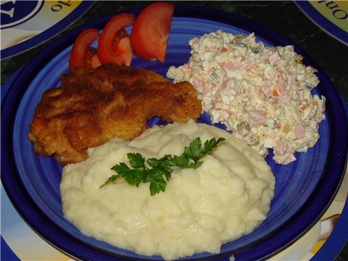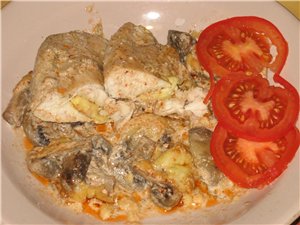 Фаршированная кура с грибами ![]() Берем филе куры и надрезаем (делаем кармашки), в них укладываем сыр и посыпаем специями (обязательно мукатный орех), потом закалываем шпашками и обжариваем на большом огне минут 5. Потом на маленький до полной готовности. Грибы: берем 1 кг шампиньонов, моем, разрезаем пополам и обжариваем на ОМ с луком и чесноком минут 10-15. Потом высыпаем из в глубокий противень, заливаем сметанойй смешанной с горчицей 5/1 и в духовку на 10 минут. Потом на натираем сверху сыром и в духовку пока на расплавится сыр. Подавать можно как отдельные блюда с зелеными салатами. |