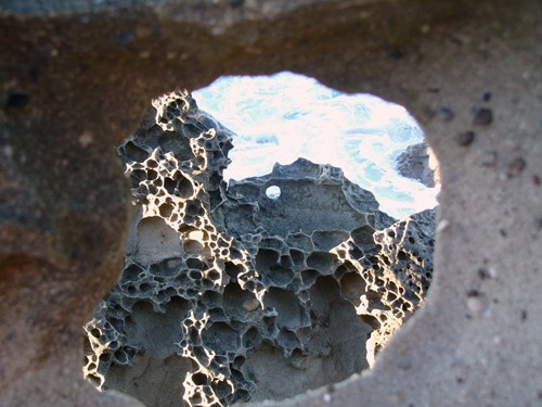 А можно на него через дыры в камнях смотреть...