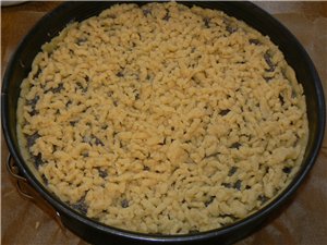 Маково-пудинговую массу вы-класть в форму на тесто и оставшееся тесто покрошить или натереть на крупной тёрке сверху.