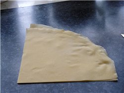 Замесить тесто, но не слишком крутое, иначе раскатывать тяжело будет. Разделить на небольшие части, сделать шарики, накрыть чашкой и оставить на пол часа. Раскатать очень тонко, на полотенцах дать подсохнуть.