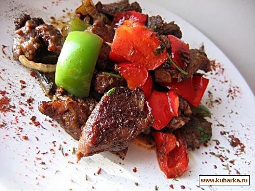 Примечания-не знаю кто как а я не могу жарить мясо так быстро, у меня всегда много жидкости из мяса, да и страшновато без тщательной тепловой обработки, так что я сначала тушила около 10-20 минут,а потом уже добавила паприку,кинзу и лук и жарила 2-минуты