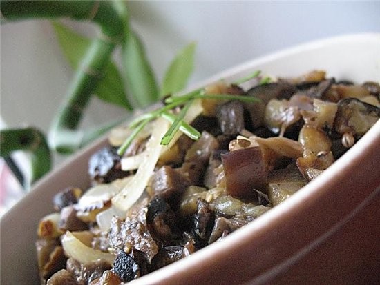 грибы и баклажаны ![]() 1 баклажан большой,500 г свежих грибов,1 луковица большая,зубчик чеснока,олив.масло,соль,по 1 ч.л. соевого соуса и уксуса,перец черный 1.баклажаны нарезать соломкой ,посолить и обжарить на раскаленном масле до коричневого цвета 2.грибы порезать произвольно,обжарить вместе с порезанным полукольцами луком 3.посолить,поперчить,добавить уксус,соевый соус,измельченный чеснок.подавать в холодном виде примечания обе закуски хороши,и так вкусно и вместе с лапшичкой,салатикам нужно настояться-в холодильнике на час лучше всего,уксус и другие приправы кладите по вкусу |