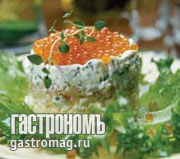 буженина,креветки в беконе,икорный тортик,канапе с паштетом и брусничным вареньем,креветки мешочках из слоеного теста с лисичками,салат с крабами,из сладкого брауни-каппучино-делаю их только на НГ,торт медовый и чизкейк с вишнями я позже рецепты поставлю,удалось сфотать только Лосось и крабы "под шубой" журнал "Гастрономъ"по мотивам ![]() 100 г копченого лосося,большая отваренная картофелина,вареные морковка и небольшая свекла,баночка крабов,авокадо,майонез,перец 1.Овощи натереть на крупной терке, мякоть авокадо нарезать мелкими кусочками,лосось мелко порезать,крабы слегка размять 2.Все ингредиенты по отдельности перемешать с майонезом. 3. Затем уложить все слоями в сервировочное кольцо в следующем порядке: лосось, авокадо, крабы, морковь, картофель и свекла . 4 .Дать пропитаться в холодильнике в течение 30 мин. Вынуть из холодильника, аккуратно снять кольцо примечания -очень вкусный,абсолютно в моем стиле и вкусе,в журнале предлагают украсить : Вокруг салата поместить свернутые колечком анчоусы с половинками перепелиных яиц внутри. На каждое яйцо положить немного черной икры и лук-резанец. По кругу выложить оставшуюся свеклу. -по моему это слишком |