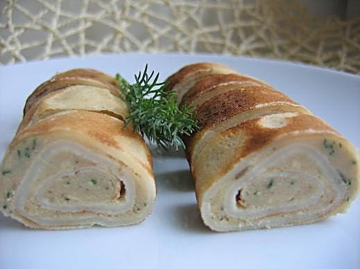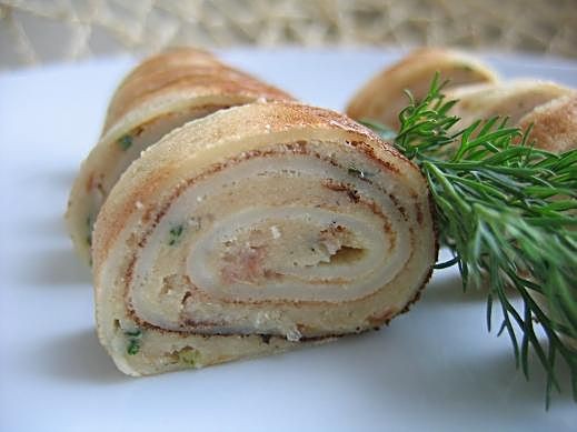 журнал Школа гастронома ![]() Для теста: 2 стакана муки 2,5 стакана молока 1 яйцо 1 ч. л. соли 4 ч. л. сахара 1 ст. л. растительного масла масло для выпекания блинов Для начинки: 1 сельдь 1 пучок укропа 200 г сливочного масла 1 .Сельдь выпотрошить, снять кожу, удалить голову и хвост, промыть. Разделать на филе, удалив все косточки, затем измельчить. Укроп вымыть, обсушить и измельчить. Смешать селедочный фарш с укропом и размягченным сливочным маслом. 2.Муку просеять и при постоянном помешивании всыпать в молоко. Добавить яйцо, соль, сахар и растительное масло. Замесить тесто. В сковороде разогреть немного масла. Влить 1 половник теста, сделать сковородой круговое движение, чтобы тесто растеклось по всей поверхности. Жарить 1,5 мин. Перевернуть блин на другую сторону и жарить еще 1 мин. Таким же образом выпечь все блины. Дать остыть. 3.Смазать каждый блин тонким слоем фарша. Свернуть блины в рулет и поставить в холодильник на 1 ч. примечания-масла я брала 150 г,селедки можно больше,скажем половину еще,у меня получилось 10 блинов-2 сьели по дороге |