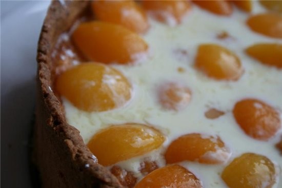 торт из белого шоколада с персиками ![]() для теста 200 г муки,125 г сливочного масла,половина стакана сахарной пудры,2 желтка для начинки 300 г белого шоколада,500 мл сливок жирностью 35%,2 желтка,2 яйца для украшеня сахарная пудра,4 консервированных персиков 1.масло нарезать кубиками и растереть с мукой,добавить сахарную пудру,желтки и вымесить в однородное тесто 2.глубокую форму для выпечки смазать маслом-уложить тесто так,чтобы были закрыты дно и бока,излишки теста срезать ножницами,сверху на тесто вырезать пергамент-заполнить сухой фасолью ![]() и выпекать 15 минут при 190 градусах.затем удалить фасоль и бумагу и поставить в духовку еще на 10 минут,вынуть из духовки-дать остыть 3.шоколад разломать на мелкие кусочки,положить в кастрюлю и влить сливки,нагревать на маленьком огне,помешивая,пока шоколад полностью не растает.венчиком взбить желтки с яйцами-продолжая взбивать влить в шоколадную массу. 4.перелить остывшую начинку в форму с тестом,вернуть в духовку примерно на 35 минут.начинка должна схватится по краям,но оставаться мягкой в центре. 5.дать торту остыть без формы,персики нарезать тонкими дольками,выложить на торт,присыпать пудрой примечания-форму лучше разъемную,у меня была 21 см,основа торта тесто выпекается аж час-много-слишком зарумянился у меня,мне кажется второй раз без фасоли не нужно ставить-сразу начинку заливать,ели мы тортик часа через 4 ну и застыл он отлично-края твердые,а серединка мягкая-как и обещали ![]() |