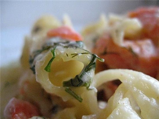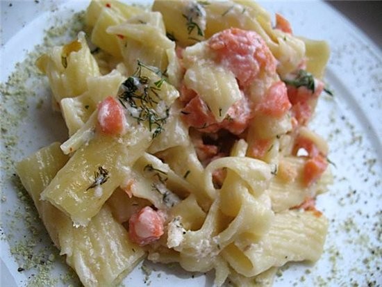 ![]() 4 стакана макаронных трубочек(ригатони) 200 г копченого лосося,полосками 2 стакана тертого сыра 3/4 стакана сливок нежирных 2 ст.л. рубленной зелени укропа,половина ч.л. кайенского перца,соль 1.макароны отварить в подсоленной воде,не до полной готовности 2.макароны перемешать со сливками,перцем,укропом,сыром(отложить 2 ст.л.) 3.смазать глубокую форму для запекания,выложить половину макарон-разместить полоски лосося,аккуратно засыпать второй половиной макарон.посыпать оставшимся сыром,закрыть крышкой или фольгой и запекать 15 минут при200 градусах,снять фольгу и печь еще 5 минут до золотистой корочки примечания ну очень вкусно!запросто подойдут любые другие макароны,сливок у меня не оказалось-сметану разбавила водой-и положила полный стакан. |