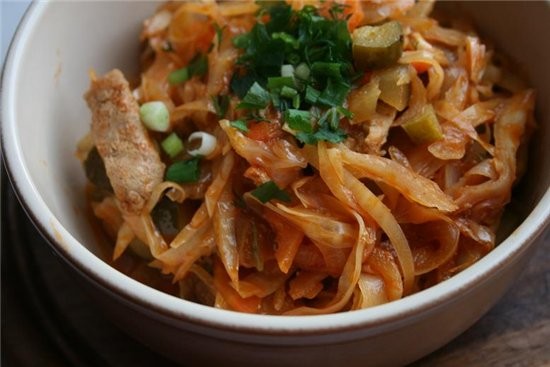 не открою америки с тушеным мясом и капустой,я так делаю для меня быстро и без заморочек