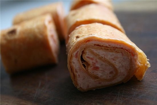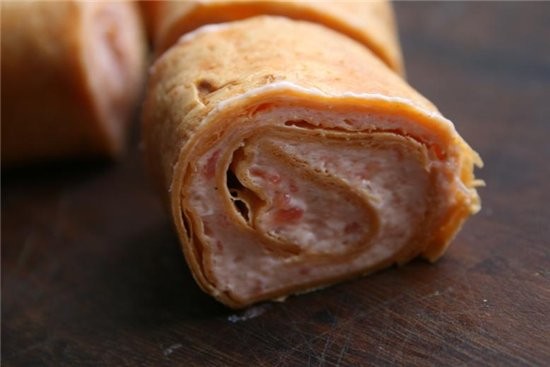 рулет из тортильи с муссом из копченого лосося и сливочного сыра