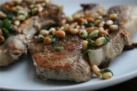да паштет печеночный домашний сама люблю,видишь как ты выкрутилась свинина с кедровыми орешками журнал школа гастронома ![]() 400 г свиного филе 2 ст.л. кедровых орешков 1 ст.л. лимонного сока 1ч.л. лимонной цедры 0,5 ст.л. меда оливковое масло,соль,перец,петрушка 1.нарезать филе толщиной 1,5 см,отбить,натереть солью и перцем и обжарить с одной стороны 7 минут,с другой 5,до коричневого цвета.переложить в миску и накрыть 2.в оставшиеся масло положить орешки и жарить 1 минуту,затем лимонную цедру,сок и мед,прогреть 2 минуты,до образования густового соуса 3.петрушку крупно порезать,вернуть в сковороду мясо,посыпать петрушкой и готовить еще 2 минуты |