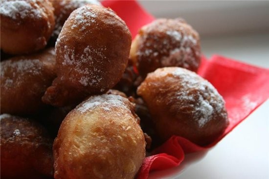 пончики ![]() 2 ч. л. сухих дрожжей 100 мл теплой воды 2 ст. л. меда 3 яичных белка 2 стакана муки щепотка соли 50 г сливочного масла 1 ст. л. сахара растительное масло для фритюра сахарная пудра 1. Муку просеять вместе с солью. Третью часть муки пересыпать в большую миску, влить воду, добавить сахар и дрожжи. Размешать, накрыть и оставить в теплом месте на 1,5 ч. 2. Всыпать в миску с опарой оставшуюся муку. Добавить мед, сливочное масло и белки. Замесить тесто и оставить еще на 1 ч. 3.разогреть масло для фритюра и выкладывать тесто десертной ложкой-придавая круглую форму,ложку можно обмакивать в воде-но так стреляет примечания тесто получается чуть плотнее чем на оладьи,в журнале предлагается присыпать хорошенько стол мукой и сформировать шарики-оставить минут на 15,затем выпекать |