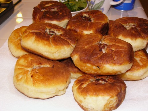 Паштечики ![]() Тесто такое же ,как и в рецепте Беляшей,ТУТ От теста отрезать кусок. Сформировать колбаску и нарезать ее на части. Каждый кусочек теста раскатываем в кружок. В центр кладем начинку и защипываем края, сначала сверху,а потом полностью. ![]() Пoлучившийся пирожок начинаем слегка сжимать в руке,а затем как бы катаем его по столу, используя ладонь и пальцы. В результате у вас должны получиться как бы вытянутые трубочки. ![]() Обжариваем в большом количестве растительного масла до золотистого цвета. ![]() Начинки Грибы с квашенной капустой Грибы с мясом Начинка Картофельная(как у меня в этот раз) Сделать пюре(отварить картоху в подсоленной воде. Воду слить,добавить сливочное масло,молоко и потолочь). Обжарить репчатый лук до золотистого цвета.Смешать с картошкой и поперчить Начинка Картофельная-2 7-10 средних картофелин 3 луковицы 4 ст.л. сливочного масла 2 яйца(сырых) Соль и перец по вкусу Картофель очистить и отварить, потолочь и смешать с яйцами, малсом ,пассерованным луком. Посолить и поперчить. Начинка Зеленый Лук с Яйцом 500 гр зеленого лука 7 яиц,сваренных вкрутую 1 яйцо(сырое) 3-4 ст.л. малса или маргарина Соль Лук нашинковать, слегка спассировать на масле. Охладить, смешать с рубленными яйцами(одно яйцо ввести сырым).Посолить Начинка Грибная 1 кг грибов 100 гр сливочного масла 2 луковицы 2-3 ст.л. сметаны Грибы очистить,помыть,отварить и нарезать кусочками.Обжарить в масле,посолить и смешаьт с мелконарубленным луком и сметаной. Г рибам можно добавить порезанной зелени укропа Начинка Мясная 400-500 гр фарша из говядины 1 яйцо 2 ст.л. томатного пюре 2 ст.л. сметаны 1 ст.л. панировачных сухарей Соль и перец по вкусу 1 ст.л. зелни петрушки 1 ст.л. зеленого лука,мелко нарезаного 150 гр сыра,нарезать маленькими треугольниками 2 ст.л. растительного масла Фарш смешаьт с томатным пюре, сметаной,яйцом, сухарями и зеленью,посолить и поперчить. Начинку уложить ровным слоем на смазанную растительным маслом поверхнсть теста. В фарш воткнуть нарезанный сыр. ![]() ![]() |