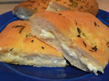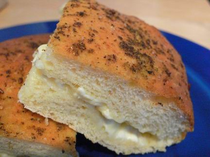 ![]() Предистория изобретения сего блюда длинноватая, но если коротко: как-то уже давно вычитала я в форуме про картофельные булочки, и еще про хачапури – и когда-то давно наделала картофльных булочек с начинкой из сыра, улетучились они все еще в теплом виде! Потом как-то было лень возиться с булочками и сделала все просто на протвень – как пирог с начинкой. Ну вот, а теперь узрела у Неллика рецепт фокачча и поняла, что я его уже сама изобрести успела По тесту я сперва приведу слова автора, Карины с кукинга, а потом добавлю свои примечания: - 500 г пшеничной муки - 150 г картофельного пюре ( 2- 3 картофеля = 200 г) - 150 мл молока - 7 г сухих дрожжей - 1/ 2 ч л сахара - 1- 2 ч л соли - 2 ст л оливкового масла - Морская соль, рубленный розмарин - 1 ст л оливкового масла - Отварить картофель в кожуре, очистить и пюрировать ( если слишком густое пюре добавить 2- 3 ст л молока) - Развести дрожжи в небольшом колличестве молока с сахаром и дать постоять 10 минут - Добавить остатьное теплое молоко, картофельное пюре и тщательно размешать.. - Просеивая честями муку, замесить тесто, добавив в конце оливковое масло и соль - Тщательно вымесить в течении 10 минут - Сформировать шар, сделать крестообразный надрез и выложить в смазанную маслом посуду. - Накрыть тесто и поставить подхоить в теплое место на 1 час - Вымесить еще раз поднявшееся тесто, раскатать толщиной в 1,5- 2 см и выложить на смазанным маслом противень ( стандартный противень от духовки) - Накрыть и поставить подходить еще на 30 минут - Смазать при помощи кисточки оливковым маслом фокаччу, сделать пальцами углубления, посыпать крупной солью и розмарином - Выпекать фокаччу в предварительно нагретой до 220 С духовке в течении 15- 18 минут ( до золотистого цвета) Так, у меня было картофеля больше, грамм 250(пюрировала с молоком 3 маленькие картофелины), а муки ушло меньше – грамм 400, дрожжи брала свежие, полкубика (20г), и я еще яйцо добавила… тесто было клейким – мягким, но я боялась что слишком крутое будет если я муки добавлю. Потом оно у меня намного больше ходило – первый раз с час, потом я его обмяла, и потом еще часа 3-4 в холодильнике, и я подозреваю что это повлияло на результат: чем медленнее и дольше ходит дрожжевое тесто - тем более насыщенный вкус, я в книге такое вычитала когда-то… Да, и процесс формирования фокачча у меня был другой. Я разделила тесто на две половинки, одну половинку раскатала в прямоугольник, не слишком тонко, где-то с сантиметр толщиной, выложила на половину смесь из 100г коровьей феты и 125г моцареллы(свежей, которая в жидкости плавает) – это стандартная замена сыра для хачапури типо сулугуни в немецких условиях, если найдете сулугуни – берите его! ![]() Накрыла начинку второй половинкой и защипала края. Из второй половинки раскатала овальную фокаччу, ок 1.5-2 см толщиной. Выложила обе на протвень: ![]() Дала подойти, сделала углубления пальцами, смазала оливковым маслом, присыпала солью, тимьяном и розмарином, одну половину фокаччи с сыром посыпала заатаром, на пробу(потому темненькая). ![]() И в духовку на 220градусов! У меня она пеклась чуть меньше 20 минут, и так зарумянилась! А я как раз на днях Неллику жаловалась что в моей духовке хлеб не румянится, оказывается я ею просто не так пользовалась Это с начинкой: ![]() Это без: ![]() А это еще один разрезик: ![]() Простую фокаччу я не фотографировала в разрезе…. Ну что сказать – вкуснот