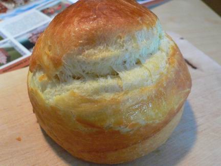 Все воруг только и говорили кто какой кулич и по какому рецепту печ будет, и я поддалась искушению! Бриош – французкий кулич ![]() 500г муки 20г свежих дрожжей 5ст.л теплого молока 1чл соли 2ст.л. сахара (можно больше, так получился лиш чуть сладкий) 6 яиц 250г мягкого масла Муку всяпать в миску, сделать в ней углубление. Раскрошить в него дрожжи и залить молоком, перемешать с небольшим колличеством муки в кашицу, присыпть мукой и дать подойти минут 30. Всыпать соль, сахар, добавить 4 яйца и замесить тугое тесть. Масло порезать кубиками, добавить сперва половину к тесту, хорошенько вымесить, масло должно полностью смешаться с тестом, добавить вторую половину, вымесить. В конце добавить 2 оставшихся яйца, месить пока тесто не станет отлипать ото дна миски(но все равно будет немного липким). Сформировать шар и оставить часа на 2 подниматься. Обмять, дать еще час подниматься. Опять обмять и поставить на ноч в холодильник(в холодильнике масло затвердеет и тесто не сильно поднимется) На следующий день смазать маслом 2 формы круглые формы по 18см в диаметре. Тесто разделить пополам и от каждой половинки отделить по четвертинке. БОльшую часть теста сформировать шаром, положить в форму и сделать в центре углубление, из меньшей части сформировать шар и положить в углубление. Дать подняться. Смазать желтком, стараясь не замазать шов, чтобы верхний шарик смог раздуться. Сделать 4 надреза на большом шаре(я забыла). Выпекать при 200градусах 30-35 минут. ![]() Есть еще вариант - бриош нежный, единственная разница к этому рецепту – масла 450 грамм вместо 250 Вообще-то для бриоша используется специальная форма, у нее и дно закругленное, у меня такой нету. Я сделала теста немного меньше чем по рецепту – у меня получился один в 18-тисантиметровой форме, и один в 15-ти.см.форме, на фото – меньший. Бриош особенно вкусно в теплом виде, к кофе или чаю, с вареньеш или так, к фруктовому салату и прочее и прочее… он отлично замораживается, что я и сделала с большим. Потом после того как оттаяи – просто подогреть в духовке. |