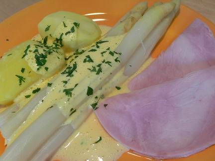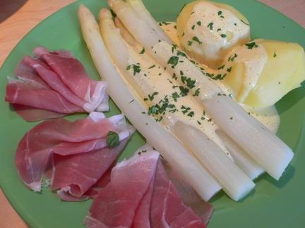 Готовила я на днях спаржу, нашу, немецкую белую, с картошечкой, голландским соусом и ветчиной – мне с сыровяленой