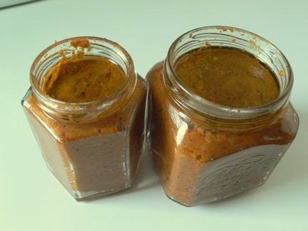 ![]() На 200г сушеных помидоров: 50г кедровых орешек 100г сыра пармезан полпучка базилика пару зубчиков чеснока оливковое масло(не знаю, может 100мл) пару столовых ложек бальзамического уксуса. Закипятить и дать немного остыть(до 80-90градусов) 2-м литрам воды, добавить к ней 4-6 столовых ложек уксуса и залить этим расствором сушеные томаты, дать постоять пару часов(время и колличество воды зависит от солености томатов, можно пробовать на вкус нормально в них соли или еще подержать). Откинуть на друшлак и дать воде хорошенько стеч. Добавить остальные ингридиенты и спюрировать все в комбайне. Масло возможно еще добавить, масса должна иметь кремистую консинстенцию, не сухую, иначе будет сложно ее с макаронами смешивать. Готово! Осталось сварить любимую пасту и смешать с песто(именно с красным песто мне проще смешивать в кастрюльке, чем в тарелке…), подавать посыпав пармезаном. Что не съелось, раскладываем по чистым банкам: ![]() наливаем сверху тонкий слой масла и в холодильник! Отлично хранится несколько недель. И потом, как кушать захочется - сварил макарошки(можно спагетти, можно любые другие), смешал с песто - готово! Примечание: вкус этого блюда во многом зависит от сыра! Я как-то очень хороший пармезан купила – было не оторваться, я его ложками так еша |
