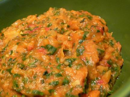 ![]() Получилось ну очень вкусно! Я даже сама не ожидала что так вкусно получится! Вкусно с белым хлебушком как в горячем, так и в холодном виде! слова автора, фото и исполения мои. Настоящее грузинское блюдо, впитавшее в себя целый букет разнообразных ароматов грузинской кухни. Запивайте его красным вином, и положите на стол вместе с лобио сулгуни (или брынзу), мчади или горячий грузинский хлеб (лаваш или шоти), а также солености - красную капусту, зеленый перец, малосольные огурцы. Кроме того, к лобио отлично подходит молодой зеленый чеснок вприкуску и молодая редиска. Вам понадобится: * лобио (фасоль) - желательно не полевых сортов, пестрое - 500 грамм; * репчатый лук - 1 большая головка; * болгарский перец - 1 шт (лучше если красный, но можно и зеленый); * помидоры - либо свежие (1-2 средних помидора), либо консервированные; * подсолнечное масло без запаха - примерно пол-стакана; * острый красный перец - по вкусу; можно вместо перца использовать сухую аджику или аджику-пасту; * 2 лавровых листика; * чеснок - 2 зубчика; * зелень сельдерея - 1 пучок (не стебли!); * свежая киндза - 1 пучок; * сухая киндза (кориандр) - 1 чайная ложка; * свежая петрушка - 1 пучок; * свежий базилик (регань) - 1 пучок (или чайная ложка сухого); * тимьян (кондари) - один маленький пучок (или 2 чайные ложки сухого); * свежая мята - 3-4 веточки или чайная ложка сухой мяты И процесс: Лобио готовится очень просто, однако в процессе приготовления надо учесть множество маленьких технических деталей, а потому, для простоты восприятия, разобьем процесс приготовления лобио на два этапа. 1. Варка фасоли Итак - перебираем фасоль, промываем ее несколько раз, заливаем большим количеством воды и ставим в котелке на средний огонь. Я никогда предварительно не замачиваю фасоль (никак не удается так сорганизоваться), так что она у меня варится примерно 3-4 часа. ВАЖНО: Во время варки надо два раза слить воду и залить фасоль снова холодной водой. Первый раз слейте воду после 10 минут кипячения. Залейте снова холодной водой и ставьте на огонь. Доведите до кипения, покипятите еще 10 минут и снова слейте воду. Налейте в кастрюлю холодной воды и теперь уже ставьте фасоль на плиту до полного ее приготовления. Обработанная таким образом фасоль будет легче перевариваться и усваиваться. Пусть фасоль варится под крышкой (но не накрывайте до конца) на огне чуть меньше среднего. Ни в коем случае не надо помешивать фасоль во время варки, просто следите, чтоб вода не подсыхала и если заметите, что она убавилась -подливайте понемножку холодную воду. Под конец варки воды должно быть немного - максимум на палец выше самого лобио, а еще лучше, если вода будет еле-еле покрывать лобио. Не беспокойтесь - если лобио получится очень густым, его всегда можно разбавить кипятком. Учтите, что фасоль должна очень хорошо развариться, фасолинки треснут и станут совсем мягкими. 2. Заправка лобио Заправка готовится очень быстро, поэтому лучше начать ее готовить уже когда фасоль сварена. Кастрюлю со сваренной фасолью можно держать на совсем низком огне, а за это время делаем следующее: В глубокой сковородке чуть нагреваем подсолнечное масло. Кидаем туда нарезанный мелкими кубиками лук и болгарский перец и поджариваем все на умеренном огне до золотистого цвета. Во время жарки можно добавить лавровые листики (а можно их просто кинуть в кастрюлю с варящейся фасоль