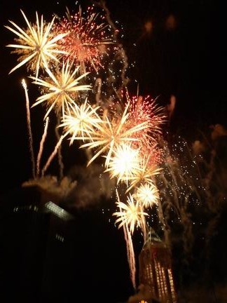 Бомбей-кари с рисом(рис уж не фотографировала ![]() а в качестве сладкого были: Напиток из дыни с мятой: ![]() и Мороженноеиз манго и кокоса, тоже самодельное, как и все в этот вечер ![]() вот так вот скромно посидели а после такого ужина пошли на салют, у нас сейчас фестиваль небоскребов, и салют стреляли прямо с крыш двух из них!: |