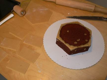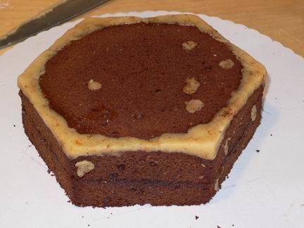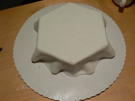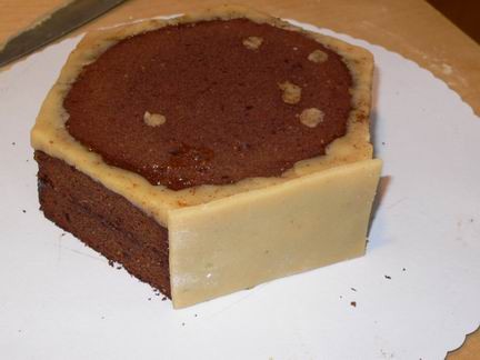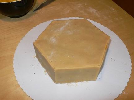 Как-то уже давно пообещала я подробно рассказать о том как делаю торты с мастикой, но поскольку делаю их довольно редко то только сейчас выполняю свое обещание. Я делаю по более хлопотной методике, чем многие, покрываю торт двумя слоями (марципаном и мастикой) плюс беру для «внутренностей» плотные пироги, потому как имею следующие преимущества: - торт делается заранее (правда процесс приготовления занимает несколько дней-вечеров), но и выдерживает хранение, не портясь (а некоторые пироги постояв становятся только вкуснее) - плотный торт снаружи и изнутри отлично переносит транспортировку, даже на далекие растояния, плюс отлично подходит для многояруснх тортов - двумя покрытиями проще моделировать более ровную поверхность наверное есть еще преимущества, но они не приходям мне сейчас в голову Итак, для внутренностей данного торта я выбрала Захер, это запатентированный в Австрии шоколадный торт с прослойкой из абрикосового варенья, оригинальный рецепт является комерческой тайной, но рецептов шоколадного пирога есть огромное множество, что мне мешает воспользоваться одним из них? Ничего! Я воспользовалась рецептом Шоколадного пирога Ирины Крутовой, считаю его самым вкусням шоколадным пирогом из тех что мне доводилось пробовать! Задумка была – двухярусный шестиугольный торт. Для него испекка два шоколадных круглых пирога диаметном 30 и 15 см (на первый взяла 2.5 порции, на второй – 2/3 ), дала остыть. Разрезать вдоль пополам, щедро смазать нижний корж абрикосовым вареньем, положить на него верхний. Нарисовать на бумаге шестиугольный трафарет, положить на торт и обрезать края. Срезать верх чтобы получить ровную поверхность. Тут можно немножко смухлевать и срезать не до полной ровной поверхности, а «достроить» бортики марципаном: ![]() Для того чтобы марципан прилипал к пирогу, его нужно смазать тонким слоем растопленным абрикосовым вареньем, протертым через сито. Также заазать марципаном большие воздушние отверстия в пироге. Если мы хотим иметь у готового торта острые грани то вырезать по траварету из довольно тонко раскатанного марципана верхнюю и боковые стороны торта. ![]() Смазать каждую сторону торта абрикосовым вареньем ![]() И приклеить им марципановую часть ![]() Так поступаес со всеми сторонами ![]() Теперь скалочкой аккуратно разграживаем все стороны, особое внимание уделяем граням ![]() Дать марципану высохнуть несколько часой. Вообще-то советуется сушить день, за неимением столько времени можно например утром покрыть торт марципаном, а вечером мастикой. |