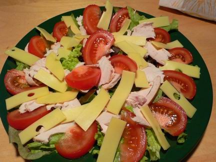 Посколку курочка попалась большая, а нас едоков только двое, и хотелось чего-нибудь легенького на ужин - сварганила вот такой вот салатик: