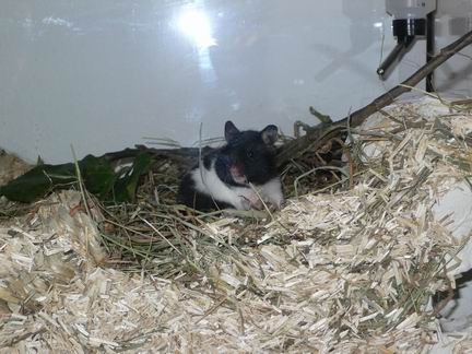 а чего я к ней лезу смотреть :ну например где у нее в етот раз туалет с лабиринтом ночю история закончилась так: вылазить из него она определенно не хотела, с делан он был: лестниза наверг, а сверху 4 шара, соединенные переходами, и ети шары на аквариуме лежали... в шара дырочки маленькие были, чтобы нам смотреть можно было внутрь между прочим если она чувствует себя неуверенно (в опасности так сказать) - фиг она едой интересуется... или же если ей любопытно - как с етим лабиринтом новым - то тоже еда ей безразлична была... она сперва все облазила 10 раз и только потом еду собрала а еще у Ленки сместился режим для: она выходит пораньше, так что мы ее видеть можем (при тусклом свете, большой не любит), и утром тоже шастает |