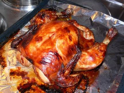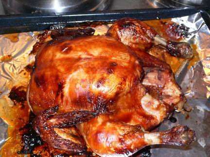Курочка запеченая с хойсин-корочкой (извиняюсь за фото, в тарелке сфотать не получилось, да и главное у этой курочки вид внешний а не внутренний ![]() Для этого блюда нам нужна конечно же курочка! Методом проб и ошибок (а как же иначе Впринципе в соус для обмазки курочки можно намешать чего угодно, например: соус хойсин (он у нас в это рецепте за основу!), соевый соус, лимонный или лаймовый сок(хойсина больше, остального меньше). У меня еще застоялся готовый манговый соус, который я в чистом виде не переношу – его тоже туда… Вкус хойсина все равно все перебьет Итак смешиваем наши составляющие соуса и щедро обмазываем кисточкой нашу курочку со всех сторон. Нагреваем духовку на 200градусов, ставим в нее курочку, через полчаса жар снижаем до 170 и еще полчаса или больше… Если температура небольшая можно и больше томить, если высокая – то курочка может высохнуть или подгореть… А должна она быть вот такой румяной! ![]() Подавать с чем угодно, мне было лень возиться с гарниром – я просто помыла картошку, завернула в фольгу(каждую отдельно) и кинула на другой протвень в духовку, получилась печеная картошечка… С курочки натекает соус – обязательно полейте им курочку, когда она уже разложена по тарелкам! Очень вкусно и сочно получается! |