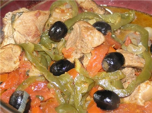 Да, что-то я отвлеклась, вот из-за куличей много времени на приготовление другой еды было немного и я готовила то, что требует минимального моего участия и является одновременно и гарниром и мясом в одном флаконе. Это молоденькая телятина, тушеная с овощами. Она получается такой мягкой, что для ее жевания даже зубы не нужны. Телятина - по провансальски ![]() 700 г телячьей лопатки, 2 зеленых перца, 3 помидора, 3 луковицы - шалот или 1 репчатая, 0,5 банки маслин без косточек, оливковое масло, 100 мл белого сухого вина, 1 ч.л. сухого розмарина, 2 веточки тимьяна, 1 ч.л. сахара, соль, перец. Телятину нарезать на небольшие кусочки, перец и лук - колечками, помидоры - ломтиками. На сковороде разогреть оливковое масло и порциями обжарить на нем телятину, чтобы она подрумянилась со всех сторон. Переложить в сотейник. На оставшемся масле обжарить лук до мягкого состояния. На сильно разогретой сухой сковороде обжарить вначале перец - пару минут и выложить его к мясу, затем - помидоры и тоже выложить к мясу. Добавить к телятине лук и маслины, розмарин, тимьян, посолить добавить перец и сахар, влить сухое вино и поставить тушиться на маленьком огне на 60-70 мин. |