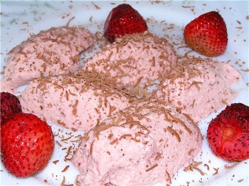 Клубничный мусс очень нежный и воздушный Клубничный мусс 250 г нежирного творога, 50 мл клубничного...