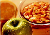 Яблоки очистить, вырезать серединки и семечки. Мякоть порезать кубиками, выжать в нее лимон.