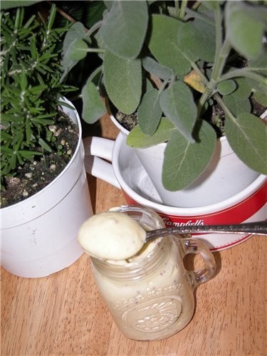 ГОРЧИЧНЫЙ МАЙОНЕЗ 4 дольки чеснока (черец пресс) 2 желтка 2 ст ложки лимонного сока 1.25 чашки оливкового масла 2 ч ложки цельнозерновой горчицы соль перец В блендере взбить до однородности яйца, сок и чеснок. Не выключая мотора ввести масло. И взбивать до получения майонеза (фото не очень удачная - прямо скажем, никакая, но видна консистенция соуса). Вмешать горчицу, соль, перец. Очень вкусно! ![]() Десерт завтра -караул устал |