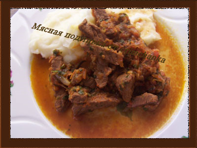 Люся, отличные салатики! А баранина- просто объедение! Такая аппетитная в остром соусе! Lyubov Люба, какая мясная подливка-класс! Думаю, что твоему половину очень по вкусу пришлась такая вкуснятина! |