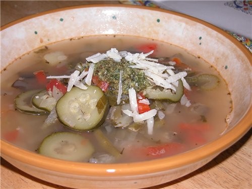 Действительно очень вкусный суп. Несмотря на то, что варится он на воде, бульон получается очень насыщенным. Если у вас нет песто, то можно обойтись и без него.