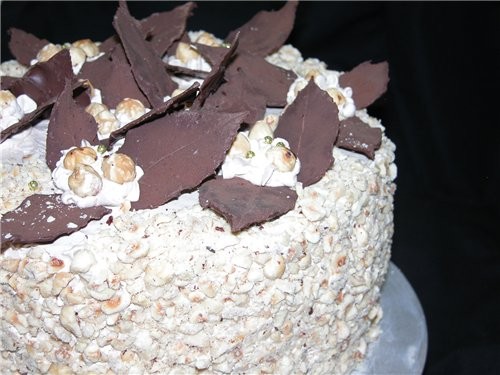 МАЛИНОВЫЙ ТОРТ "ШИФОН" Основа торта "ШИФОН" Шведский масляный крем КОНДИТЕРСКИJ КРЕМ ПРОСТОЙ СИРОП 1 чaшка воды 8 унций сахара Смешать и довести до кипения. Охладить. Хранится в холодильнике бесконечно. МАЛИНОВЫЙ СИРОП И УКРАШЕНИЯ 1 чашка сиропа 2-3 унции Chambord, Framboise, Kirsch 4 чашки малины (не мочить) Смешать сироп и ликёр. Отложить 12 самых красивых ягод. "ПОСТРОЕНИЕ" ТОРТА Подровнять коржи. Торт с кратером или с горкой посредине никогда не выглядит профессионально. Разрезать каждый корж на 2 (получилось 4 коржа). На пьедестал положить 1 корж разрезом вверх. Кисточкой смочить торт сиропом. Из кондитерского пакета высадить WВЕЙЦАРСКИЙ МАСЛЯНЫЙ КРЕМ по окружности, 2-3 уровня. заполнить середину КОНДИТЕРСКИМ КРЕМОМ. Вдавить несколько ягод в крем. Накрыть следующим коржом и повторить. Продолжить процесс с двумя следующими коржами. На врхний торт КОНДИТЕРСКИЙ КРЕМ не наносить. Проверить торт на ровность, при необходимости подровнять бока. Покрыть бока и верх торта ШВЕДСКИМ МАСЛЯНЫМ КРЕМОМ. Отсадить 12 розеток по окружности в 1 см от края.. В каждую розетку положить по ягодке. Вместо Малинового торта я делала Ореховый. Бока и верх обсыпану рубленым жареным фундуком, сверху шоколадные листики и жареный фундук. |