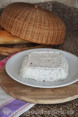 Террин из творога с редисом ![]() Надо (на 10 порций): творог (некрупинчатый)- 400 г желатин- 1,5 ч.л. сливки (10-20 %)- 100 мл редис- 100 г хрен тёртый- 2 ст.л. свежие укроп, петрушка, кинза- по 1 пучку сок половины лимона соль, перец Приготовление: Желатин замочить в 4 ст.л. холодной воды на 1 час. Когда желатин набухнет, растворить нагреть его в сотейнике на маленьком огне или в микроволновке до растворения желатина. Редис и зелень вымыть. Редис потереть на крупной тёрке, зелень мелко порезать. Смешать в миске мягкий творог, желатин, редис, зелень, хрен, лимонный сок, соль и перец. Тщательно перемешать. Форму застелить пищеовй плёнкой, наполнить творожной массой. Сверху накрыть плёнкой, положить груз и убрать в холодильник на 4-5 ч. При подаче перевнруть форму на блюдо, выложить террин, снять плёнку и разрезать на куски. Можно подать с ржаным хлебом или картофелем сваренным в мундире. ![]() источник- "Коллекция рецептов" от меня- кинзу не использовала, укроп- сушёный. добавила порезанный зелёный лук. груз не ложила, потому первые куски были немного неровными (потом выделилось чуть чуть сока, террин стал поплотнее) |