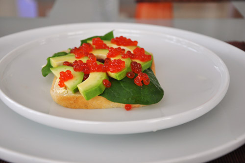 Бутерброды с авокадо, шпинатом и икрой ![]() Надо (на 4 порции): Хлеб для тостов (белый)- 4 куска Красная икра- 2-3 ст.л. Авокадо (небольшой)- 1 шт. Шпинат- 20 г (несколько листочков) Сливочное масло Лимонный сок- 2 ст.л. Приготовление: Шпинат вымыть, обсушить. Авокадо очистить от кожицы и удалить косточку, мякоть порезать на тонкие длинные дольки. Сбрызнуть лимонным соком. Смазать куски хлеба (тонким слоем) мягким сливочным маслом. Выложить сверху листики шпината, затем дольки авокадо и икру. Подавать сразу же. |