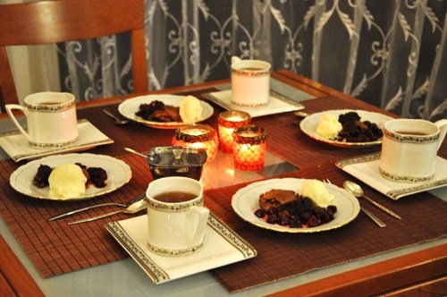 фондю запивали горячми яблочным напитком с ромом, назову его пуншом. извините за несходство с истинным напитком, но кроме глинтвейна, пунша, абсента и самбуки я других горячих алкогольных напитков не знаю ![]() а на десерт что-то наподобие , брауниз (муки всего 1 ст.л. на 10 порций) с амаретто-вишнями и мороженым. надо сейчас придумать название, т.к. кексами это шоколадное нечто не обзовёшь. ![]() ![]() извиняюсь за фото. освещение по ним плачет |
