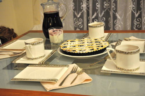 А чего в стакане рядом с пирогом? Посуда красивенькая, кстати нашли к ней чайник? И мне кажется, или твоя первая чашка из этой серии(у тебя же кажется сперва только пару было, остальное недавно докупили, так?) немного другой формы были, или мне мерещится... |